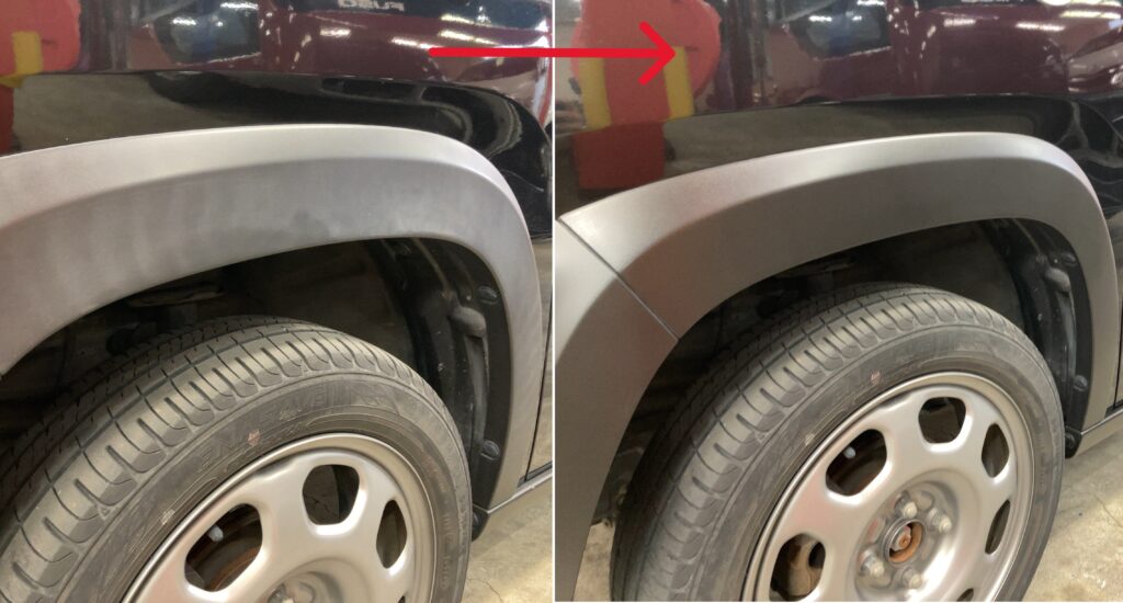 SUVなどアウトドア系デザインの車は樹脂パーツが多く使われている傾向にあり、特に目立ってしまいます。