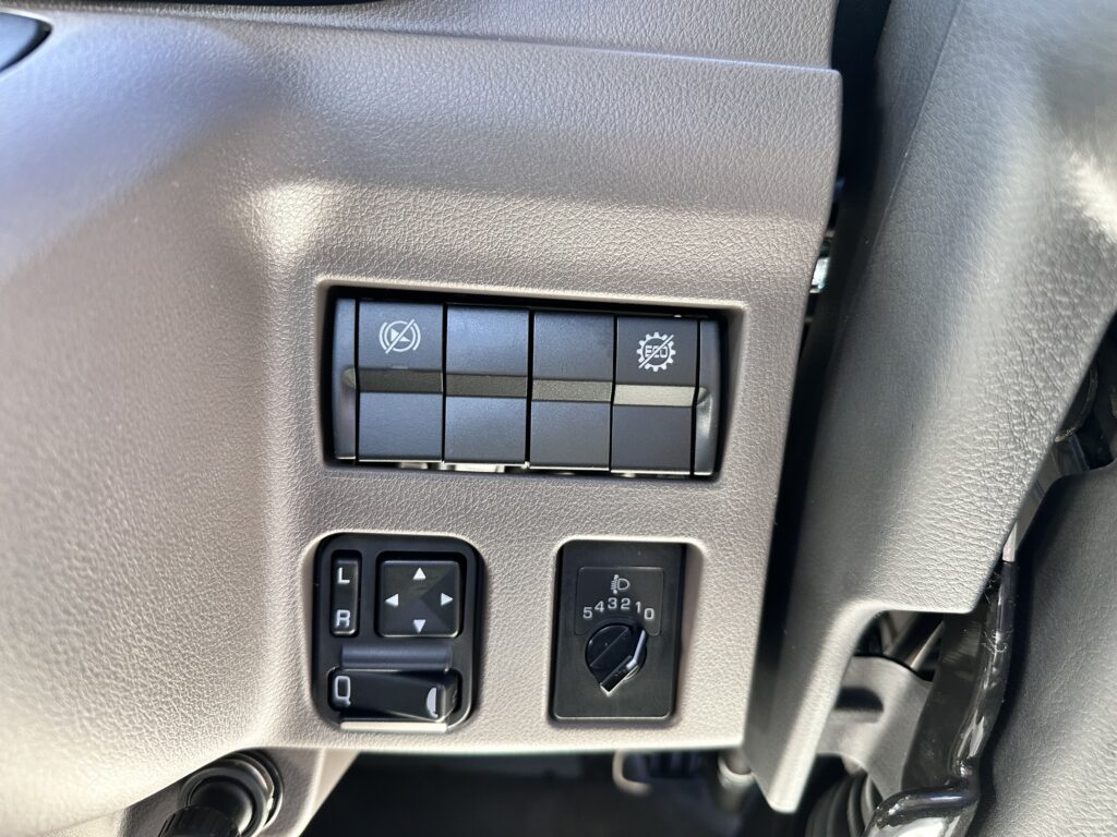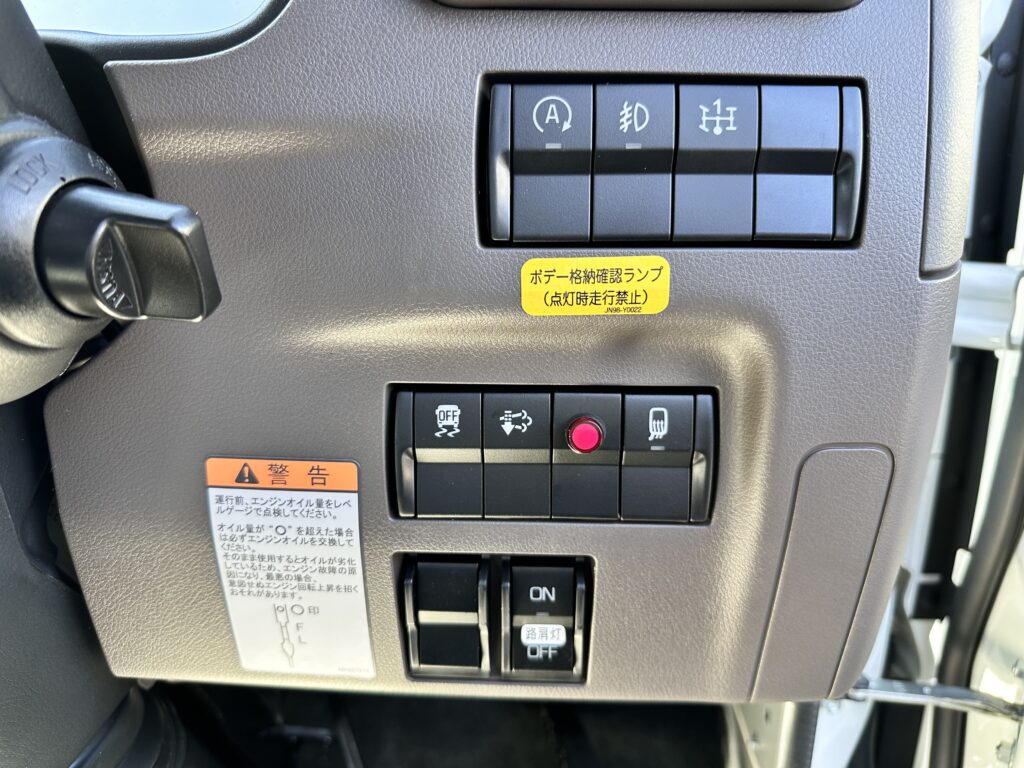 左右電動格納リモコンヒーターミラー・助手席エアバック・LEDヘッドランプ・LEDフォグランプ・タイヤ固縛前後付・ウィンチ・ワンタッチロック・リアゲート自動起立・路肩灯・