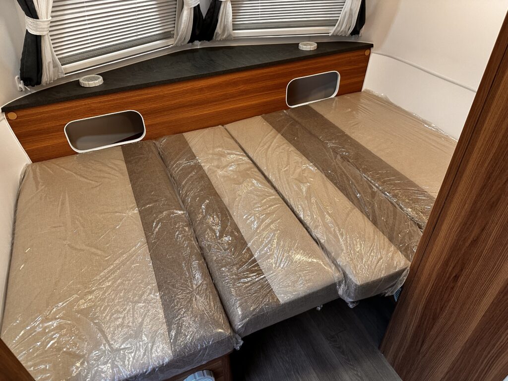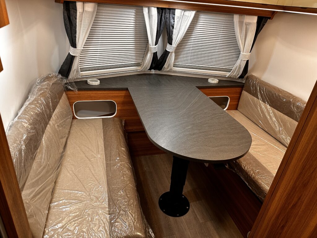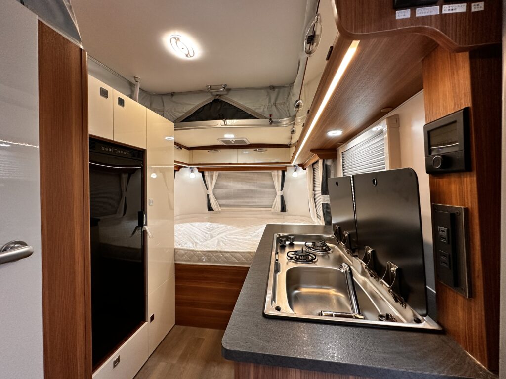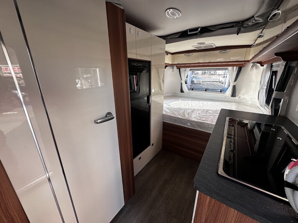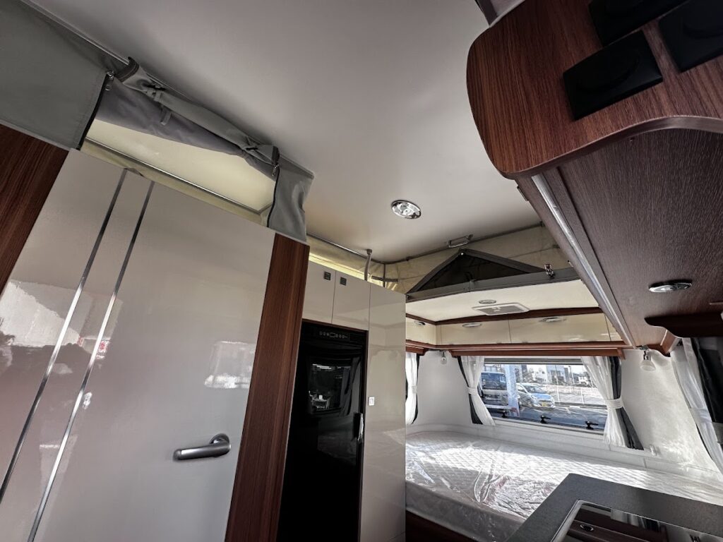 AL-KO社製シャーシフレームを採用し、外装はアルミ板を採用ポーップアップ式キャンピングトレーラーとなります。ソーラーパネル630 500W ・RENOGY社製 2000Wインバーター・走行充電システム・リチウムバッテリーイオンバッテリー200A・シンクコンロ・ベット&ソファー・左開きエントランスドア・ステップ・シェイド&カーテン・冷蔵庫・給水120L/排水70Lタンク・温水ボイラー・ヒーター・クレサナトイレ 車両詳細 長さ618cm/幅200cm/高さ229cm車両重量1,460kg 令和7年4月登録車両 未使用展示車車 両本体価格 ¥6,600,000-税込み